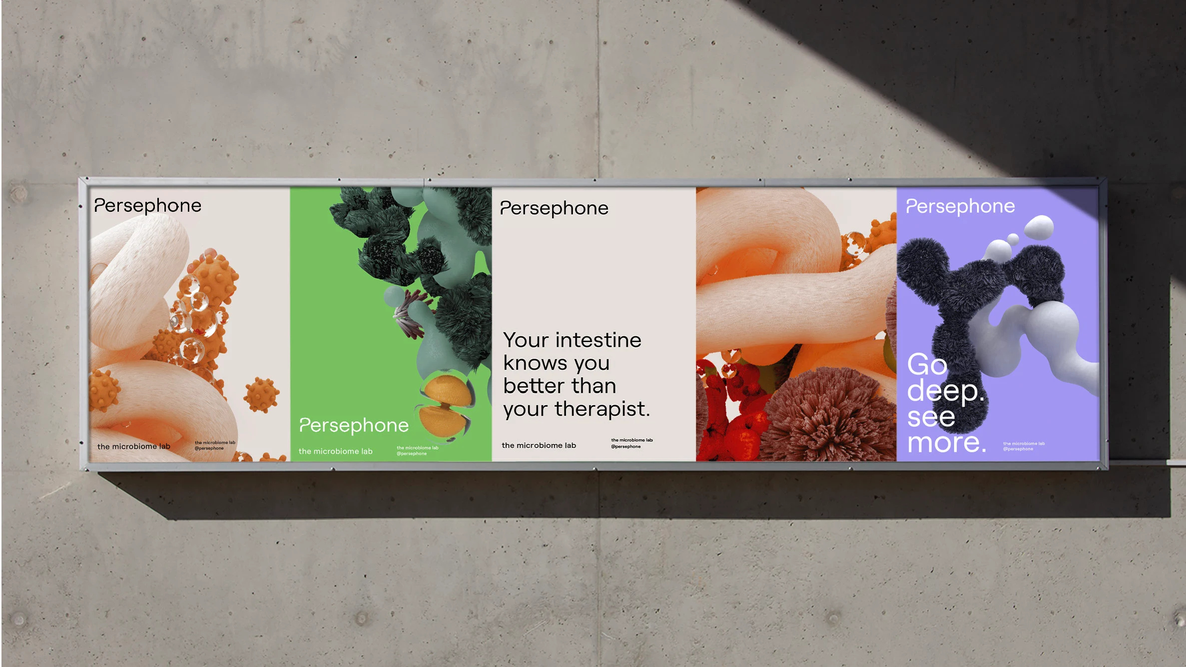 persephone is a biosciences lab studying the human microbiome. rather than a cold, clinical entity, the lab becomes a canvas for imagination: bursting with colourful, intricate 3d shapes, clever messaging and a bold visual identity. the creators treat the human gut and its secrets not just as science, but as a meaningful journey, one that deserves creativity, beauty and impact. this is branding as purpose: science meets art in a way that feels alive, hopeful and deeply human.